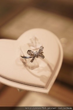 實在受不了蝴蝶結的誘惑,我決定今年提前送我自己一個生日禮物(會不會也太提前了),就是這款無敵甜美風的小碎鑽蝴蝶結,咦?我不是陪人家來挑婚戒的嗎?M小姐還拿了男戒給我問我要不要買給蟹老闆,嗯~我想一下好了