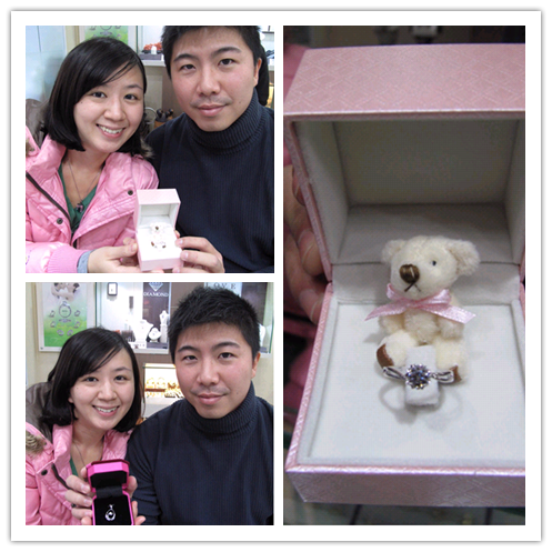 當然,首先必備的就是鑽戒,但是這真的是第一次,沒有朋友可以跟我說去哪裡買鑽石,所以只好靠自己到知識家詢問,不過大家眾說分云,推薦高雄的珠寶商就有一二十家,為了未來的老婆,所以我就一家一家的問,那天又下著小雨,同樣的鑽戒都有不同的價格,有些服務人員甚至看我好像還很年輕,服務的態度並不是很好。終於北高雄的珠寶商都跑過一輪了,從不知道該如何問問題,到變的別人以為我很專業。現在剩最後一間卻是在南高雄,心裏想著,下著大雨,距離又那麼遠,真的很掙扎,不過為了我心愛的未來的老婆,而且網路上又強烈的推薦這一間珠寶商,騎著我的小噗噗往目的地衝了!