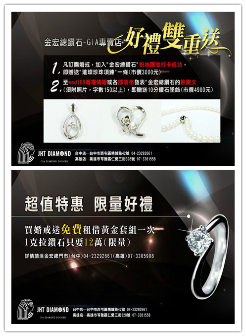 <a target="_blank" href="http://ad.wed168.com.tw/diamond/150033.html">JHT Diamond金宏總鑽石</a>