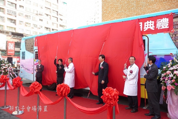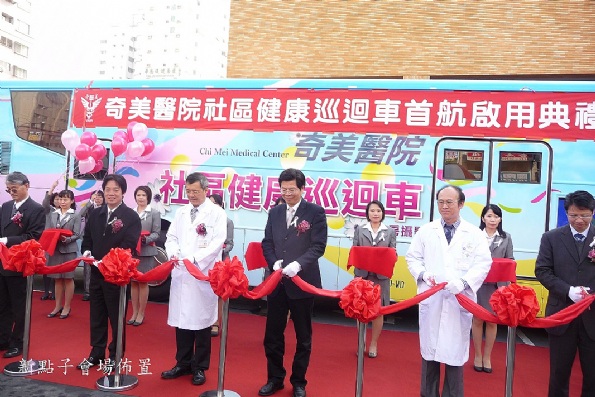 醫療服務零距離 / 奇美醫院「社區健康巡迴車」9日舉辦首航啟用典禮,日後偏遠地區婦女癌症篩檢服務將更全面,台南市長、衛生局局長林聖哲均蒞臨現場為啟用儀式剪綵,賴市長代表臺南市民,感謝奇美醫院在社區健康照護上的貢獻。
