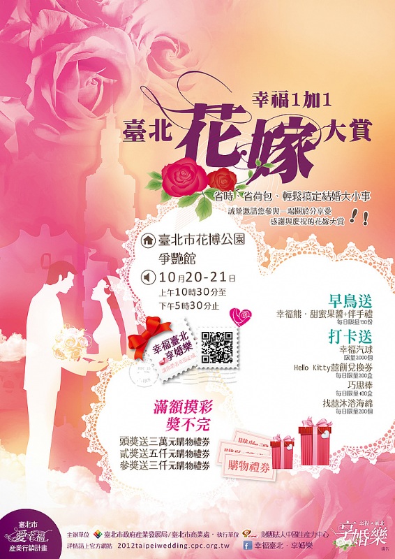 大會更規劃有早鳥裡、打卡禮、滿額摸彩等活動~ 希望民眾能在臺北享婚樂~