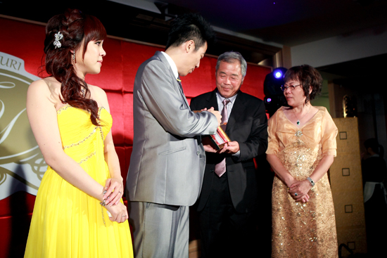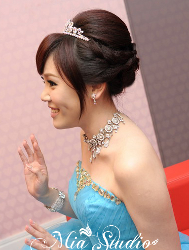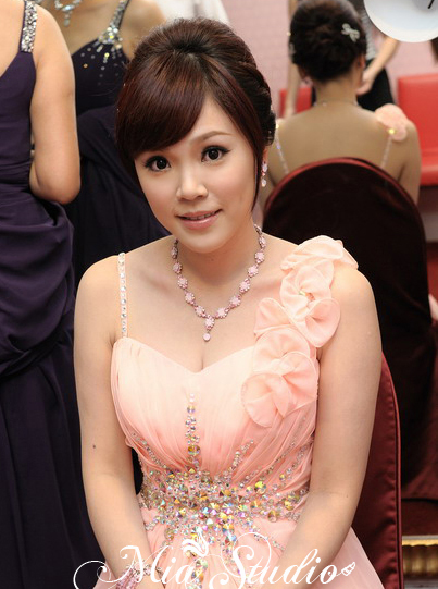 在婚宴會場燈光的照射之下,再搭配上髮色,更能清楚的看到Mia編髮的功力![]()