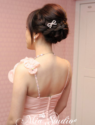 造型重點:清透乾淨自然的底妝,優雅簡約的韓式盤髮+編髮