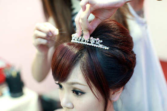 我請Mia幫我把蝴蝶結取下換上一個皇冠並幫我加上第三層假睫毛