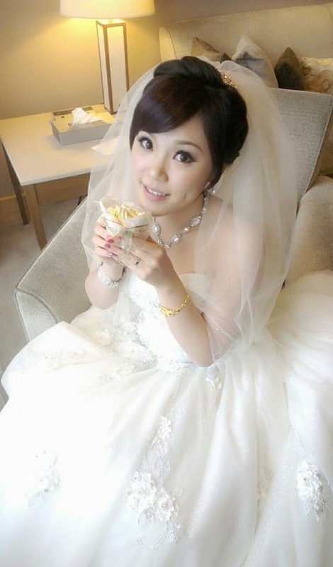 頭頂部分所做出來的澎度也夠,讓別人不易發現新娘子的扁頭