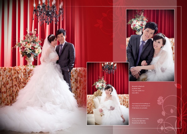 在決定結婚後,就開始尋找適合的婚紗店,在親朋好友的介紹下,挑選了幾間,在價格和其他條件的比較下,決定了在台中巷子裡的精品婚紗工作室,從一開始的接洽,熱心又專業的的態度,讓我們倆一致認為FU很讚,環境感覺也很舒服,雖然他們的門面不像一般的婚紗店有氣勢磅礡的場景,不過卻有著精緻又不失大方典雅的小巧內在,剛好很幸運的跟到活潑大方的門市靜瑜、認真細心幫我找婚紗的美麗小雯、專業又認真的帥攝影師賴sir、超搞笑又很帥的頭文字翔、可愛又負責的美麗照型師Anna、還有認真幫我們讓照片看起來更讚的羅雲、還有全部的工作同仁們,呵…搞笑又隨和的大伙,說實在的,fu超好的,從頭到尾的過程都是愉快又開心的,而我們在意的就是這個感受啦,當然,作品是更重要的,剛接洽時就跟我們說:我們有最專業的保證、MV式內景攝影棚、最好的服務團隊、而緍紗雖然不多,但卻擁有全台獨一無二的設計款…還有最在意的一點,他大方的底片全贈,不像有些店底片還要花錢買~~~好佳在有好友巧婷的推薦,讓我有機會在婚禮中最重要的緍紗有個完美的作品,小而巧小而美的緍紗店,我喜歡,更喜歡那搞笑又親切的團隊好友們,謝謝你們啦~~~