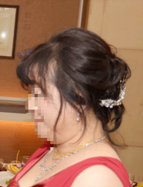 12點入席 明顯感覺 髮飾有滑落的頃向 髮根邊強力劇痛.........請現場 幫忙補妝的嫂子幫我看狀況....