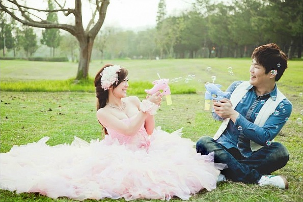 在挑婚紗的過程中,其實一開始就打定會選擇”台中某巷子內的精品婚紗工作室”,因為是朋友的朋友介紹的,說這間的CP值很高,照片拍的好,價位又實在!!所以雖然在來這之前已看過兩間婚紗店,但這裡的門市小姐,都超有親切感,業務瓊林,她很細心的幫我介紹包套內容,細心的聽完我們的需求,而且卻不會露出一份”不下訂,就逼你或不理你的態度”,更不會”搬出”長官來,而且瓊林說這裡的”主客源有九成都是介紹客”,像我們就是九成中之一啦。