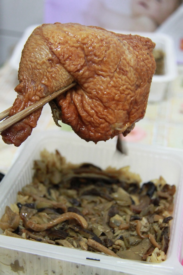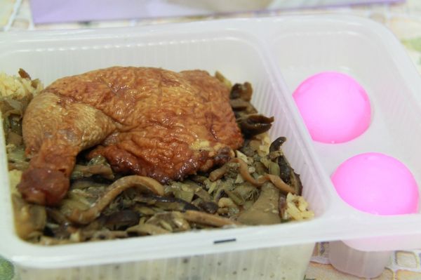 我收到的是12兩油飯,內含油飯+兩顆紅蛋+一隻大雞腿