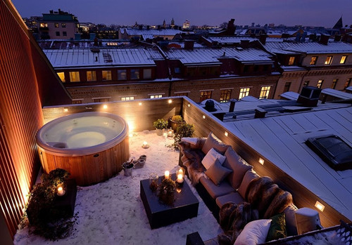 10. 在瑞典哥特堡,泡頂樓盆浴。