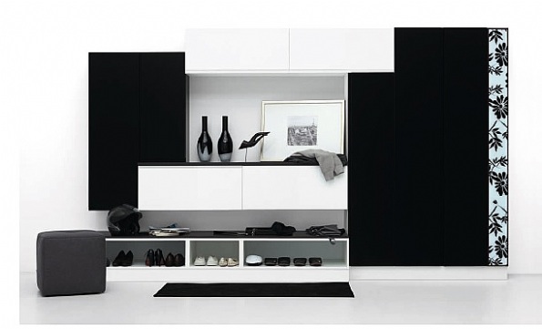 個性黑白玄關櫃, 多層次空間與色彩的佈排,層次分明的設計取代了牆面的冷硬的線條,收納功能也很強大,鞋子再也不怕沒地方可以住,家中設計就是利用這黑白層次去做設計的。