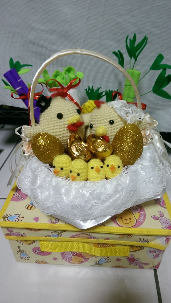 帶路雞DI Y, 配件都是不織布自己動手做的,金雞蛋去買金粉+漿糊再噴上定型液