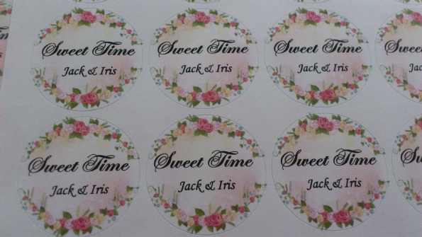 為了想要有專屬的小物, 我也花了點時間找廠商幫我印了有代表性的貼紙 ( 貼紙的式樣, 具代表性的英文字, 字型等 ) => Sweet Time + 我們的名字 !!