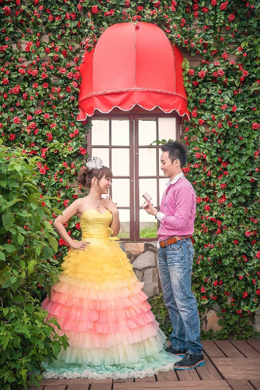 題外話時間:其實,在當學生妹時,和好朋友討論過拍婚紗這件事情,身高只有152的我,總是想著,哪裡會有小個兒穿的婚紗嘛!怎麼我都沒想過,澎裙中可以暗藏玄機呢!想到不禁莞爾一笑。