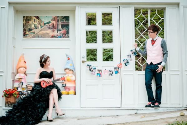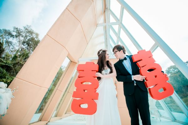 接著我們可愛的攝影師熊sir,他的專業與高評價果然名不虛傳,拍照過程熊sir很有耐心的引導還要負責講笑話讓我們放鬆,我們也自己帶了一些道具,熊sir還很專業的幫我們分配好道具的出場順序,因為事後回想我和老公都覺得拍照時整個就是大放空(笑);然而因為我們真的很不習慣漏牙齒兒拍照(根本是沒有過),但是拍照過程是每張都露牙兒拍,所以我們一直好擔心拍出來會不自然不好看,但是因為有熊sir的專業拍攝跟引導與搞笑,讓拍出來的照片我們真的都好喜翻!真的…超愛哩^^而且那天還有下點雨,熊sir更是不失專業的在雨中幫我們拍出好唯美的照片,真是辛苦了!