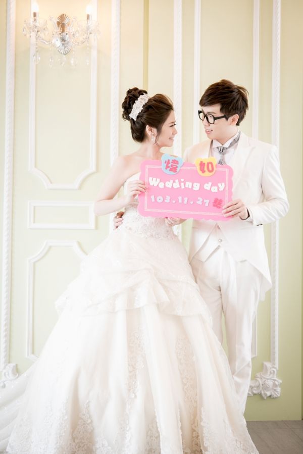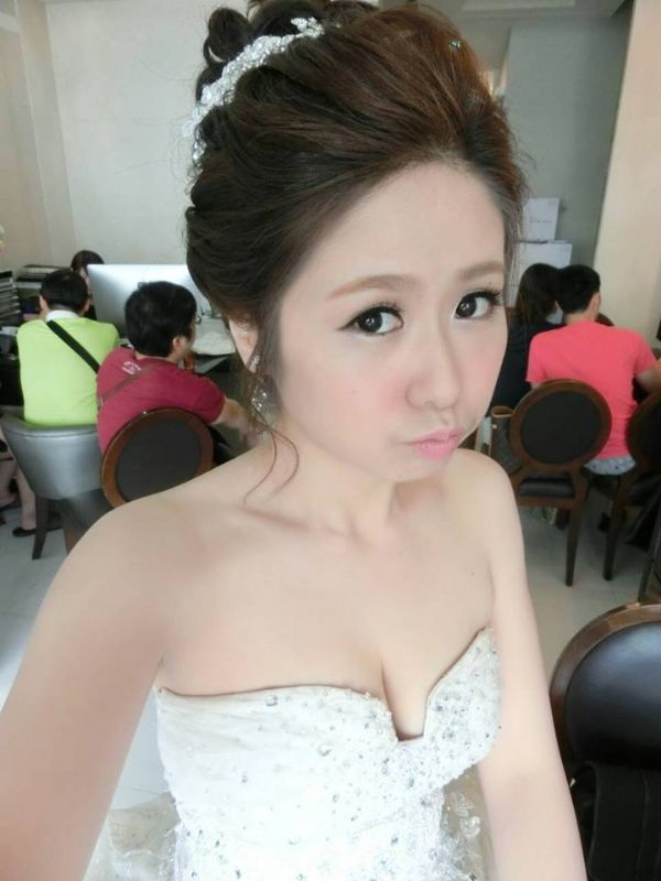 不得不先來誇獎一下我的造型師,太太太愛她的巧手了,因為平常就有在化妝黏假睫毛(拍完照隔天就算有化妝還是莫名的一直覺得自己的眼睛好小),但當詠琳幫我化好妝時我整個大驚,因為我的眼睛變好大兒,妝很自然不會讓人感覺很濃或是髒髒的(愛慘了那天的妝,都不想卸哩)!然而給詠琳看我喜歡的髮型圖片時因為我翻得很快,後來心裡一直擔心詠琳有看清楚嗎?會不會用不好,結果根本是瞎操心,因為不只每個髮型都是我喜歡的而且真是超好看!我跟我老公整個都很愛詠琳幫我做的每一個造型,真的超級謝謝詠琳!讓我那天好漂釀^.<