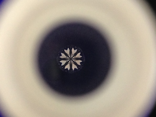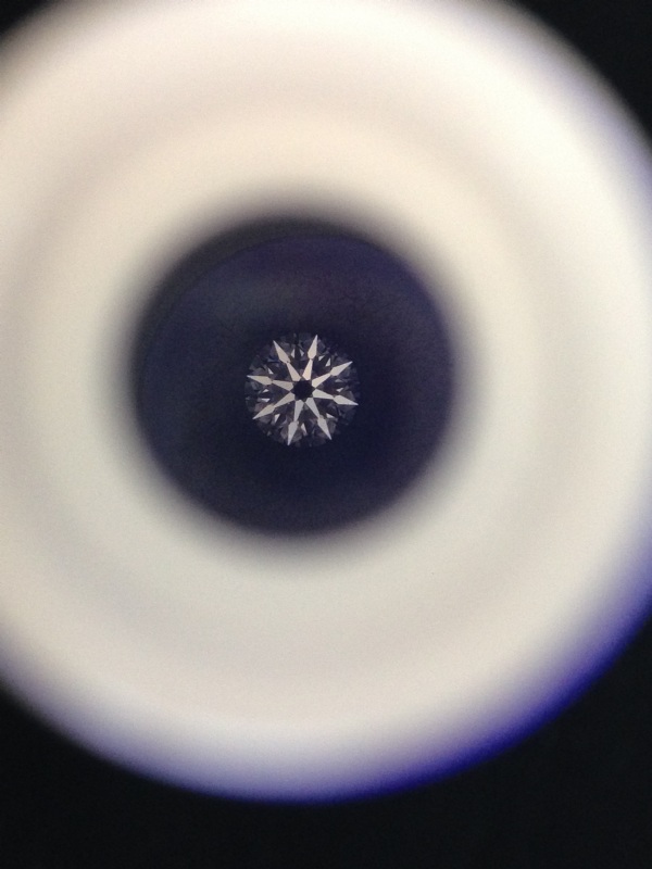 至於3X分的鑽石,老闆拿出GIA證書並用顯微鏡讓我們看鑽石腰圍上的號碼,