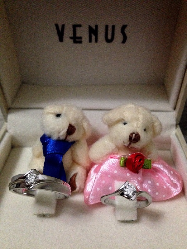 現場新人們試戴婚戒合不合手指,再核對女戒鑽石腰圍上的號碼,