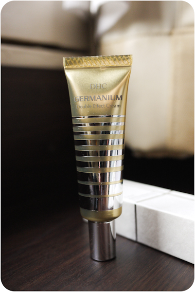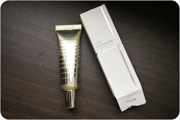 這個10月因為要去日本東京玩,在東京的朋友託我在台灣幫他買收斂水(因為日本沒賣),去百貨逛了專櫃之後突然覺得...男生都這麼用心保養了,我這已經當媽的是不是應該要更用心點來保養!? 因為我是屬於乾性肌膚,所以平常都只有強調保濕部分的來做肌膚保養。直到去年生完小孩後到現在也一年的時間了,發現當媽媽後真的老好快喔!皺紋瞬間通通跑出來,此時心中燃起想買除細紋的產品火來...後來問了學姊有沒有推薦的(除細紋)產品,她說可以試試看DHC的「頂級GE Double拉提再生霜」因為學姊也已經是當媽的人,看她的肌膚超好的,所以我想聽她的準沒錯!隔天立馬衝去買,而且還是老公買送給我,當做是我的生日禮物,真開心 (人ˊ3ˋ)~❤