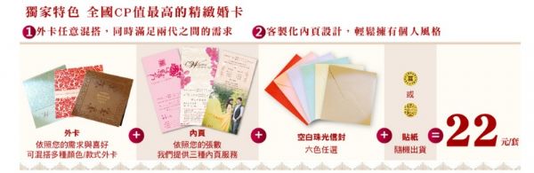 還有重點是不管看上哪一款喜帖都只要“22”摳!!!(包含外卡+內頁印刷+信封+貼紙)