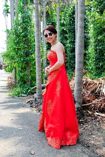 這套禮服是淘寶上的「衣紗布菲」禮服,質感還不錯,近看也ok,穿上之後大獲好評!