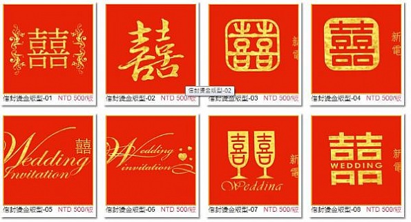 再來的信封 選擇,也是讓人驚喜,材質是閃亮亮的珠光信封,看起來就很有質感,另外可以提供信封燙金的服務,就連燙金的圖案都有許多版本可以選擇~但需另外收費500元!