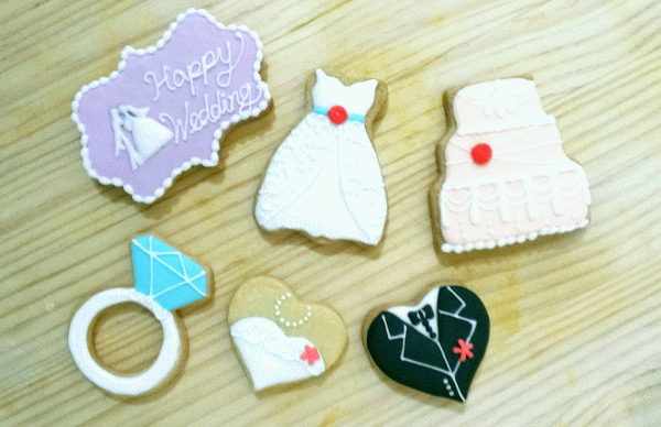 除了之前分享的手作新婚賀禮,也幫好友準備了婚宴上的小禮物,因為手繪餅乾的製作過程繁複且工序細膩,所以為了決定餅乾的數量和造型,和好友歷經了幾番認真的思考與討論,最後決定準備10份,分別送給上台沒抽到捧花的好姊妹們與幫忙準備婚禮的親朋好友們。