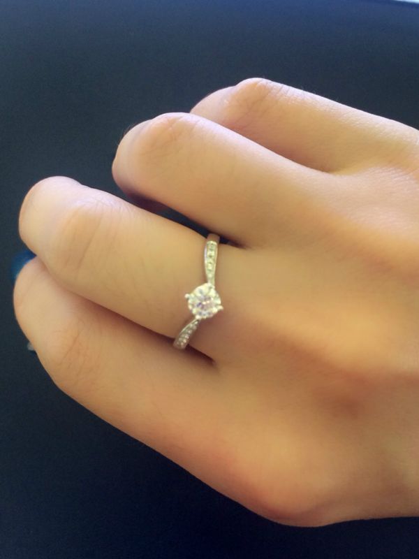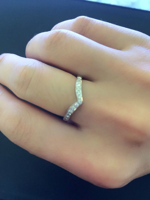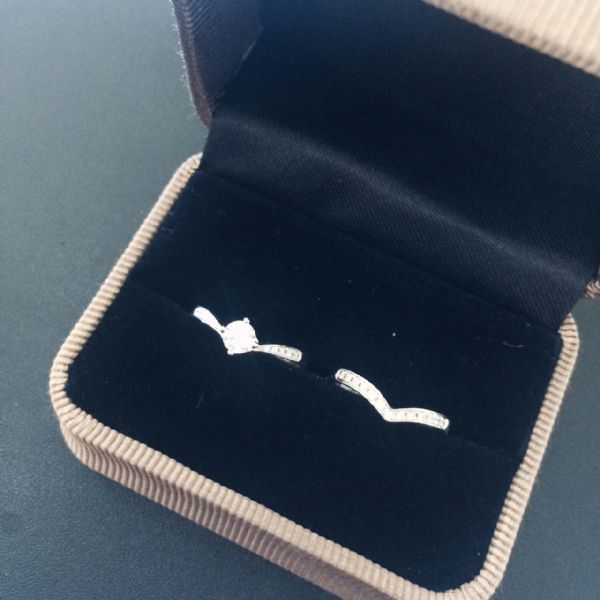 於是我挑了一款V型中間有一顆主石的鑽戒,很修飾手型,看起來手指有拉長的效果,男友對她們店很滿意還讓我追加了一個V型線戒,可以平常戴,兩個加在一起戴也可以,整個很華麗,真的開心到撒花轉圈圈了。