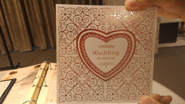 ☆為您好事喜帖☆ 這次的喜帖門市是男朋友找的,因為想確認它的質感並問詳細的內容,所以千里迢迢地跑到永和去一探究竟~ 門口佈置得很溫馨,一樓展示喜帖外卡,到二樓才發現他們也有租借婚紗、捧花、婚鞋及攝影的服務。