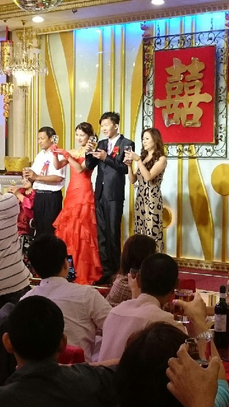 好不容易等到主持人來了,我們才急急忙忙的進場,然後敬酒像在趕火車,非常快的敬完了