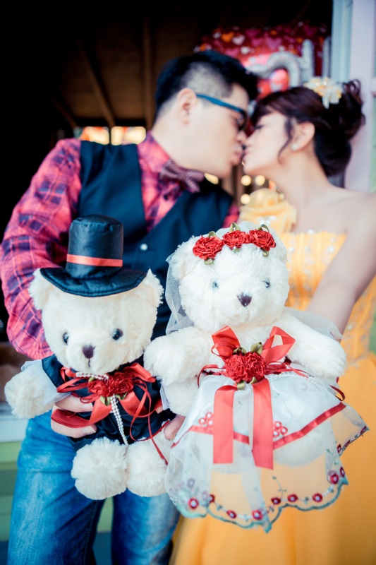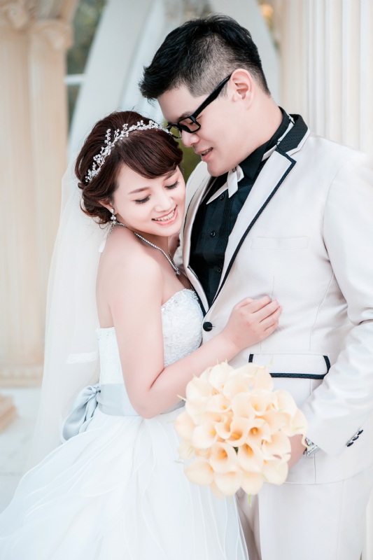 婚攝是熊'R,助手是小田,一開始拍照時非常緊張,有點放不開,幸好熊"R跟小田很有耐心地拍攝跟搞笑,讓我們心情放鬆很多