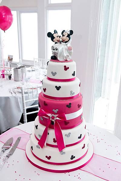 多層次的蛋糕配上滿滿的米奇米妮logo裝飾