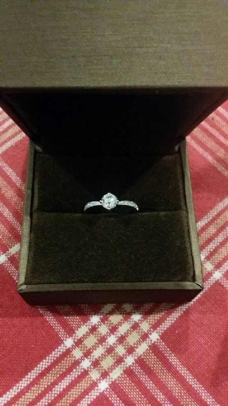 最後選擇了0.53克拉.E、VS1、3E等級的鑽石,18K的戒台。價錢只在7萬左右,跟有品牌的戒指至少是差了一倍的價錢。小弟跟水水看到戒指後,也感到相當滿意。