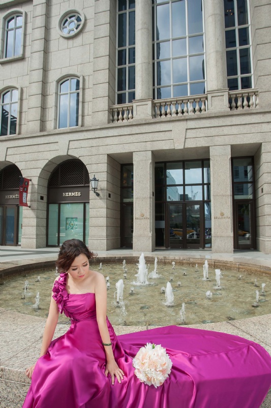自來水博物館(高貴),我選了一件長後擺,綢布上面鑲一堆鑽的禮服,這是我今天最大的敗筆,就是整個超重.