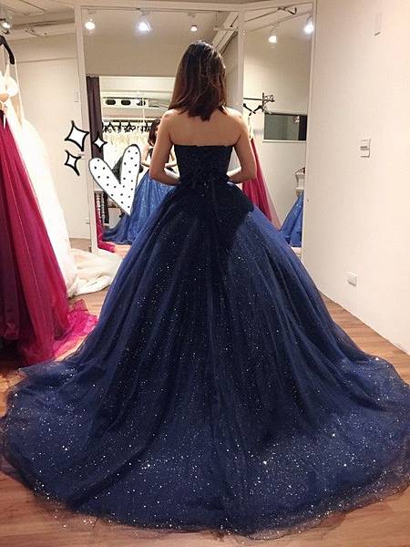 3.桃心領深藍色星空禮服