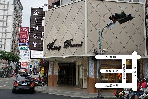 金長利珠寶店的位置相當好找,正位於大墩十街與東興路三段黃金三角窗的地段,我們一路從東興路過來遠遠就看到偌大的招牌在歡迎我們。