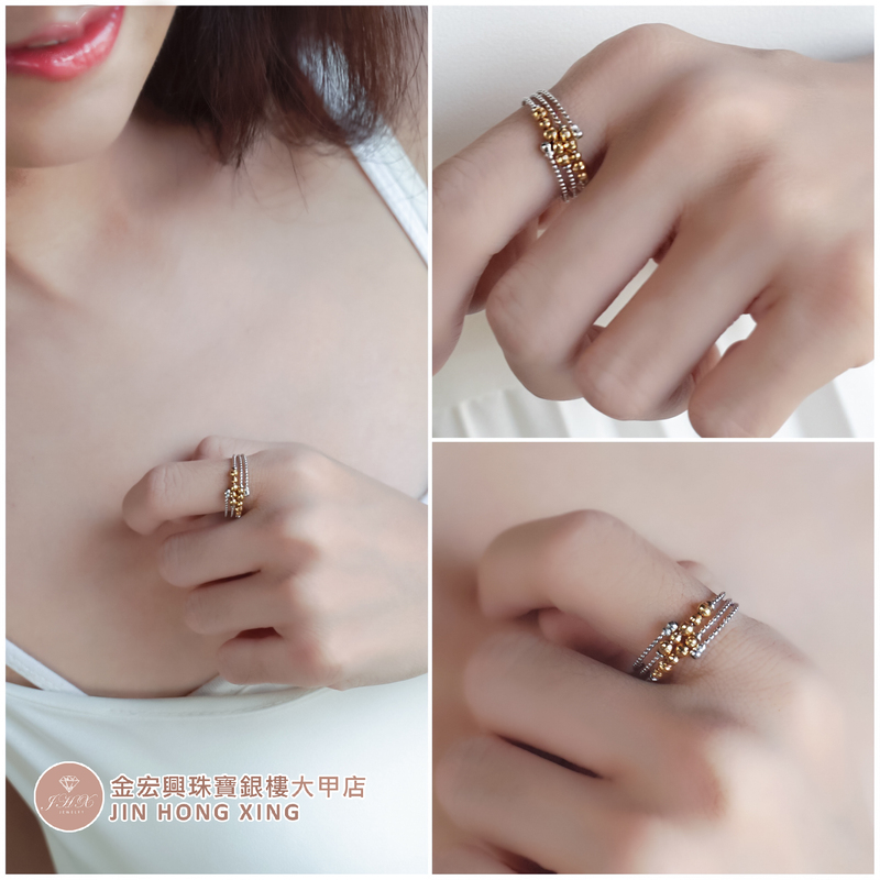 雙色麻花戒搭配圓珠造型,夢幻曲線浪漫風格💍性感百搭。