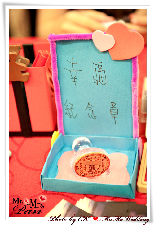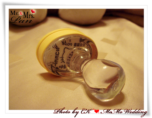 婚禮印章是本大爺一系列"結婚良品"中最有趣的設計了,但也是最幼稚的(幹嘛把參加婚禮搞得跟到名勝古蹟遊玩一樣...)!其實做印章完全是為了好玩,想說大家寫祝福卡時可以來蓋一下,要不然無聊的時候也可以亂蓋在身上或臉上找點樂子,這種智障的行為應該只會出現在本大爺&公主人妻的婚禮上了,真是夠了!