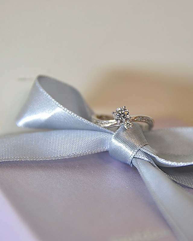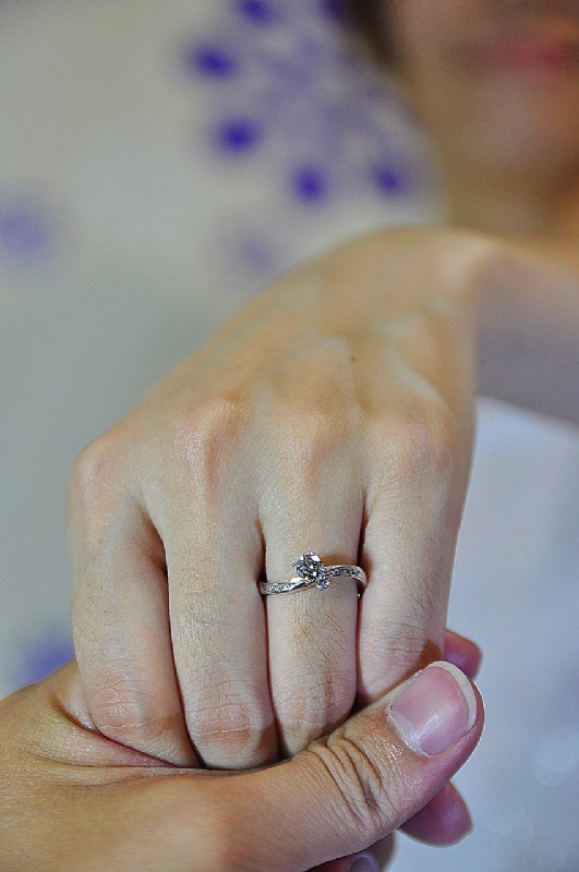 這是水水的鑽戒,S型的曲線鑲有碎鑽,中間的主鑽有0.33ct,旁邊的配鑽也有0.15ct,細的戒指超適合像水水這種沒有肉的手XD