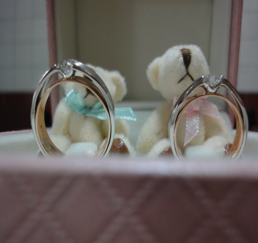 拿到的時候戒指盒裡還有兩只熊耶(聽說這就叫做"熊愛你"拉)^^