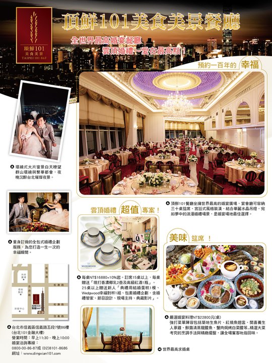 頂鮮101坐擁世界最高的婚宴廣場,站在全世界最高的地方遠眺大台北星空美景~
