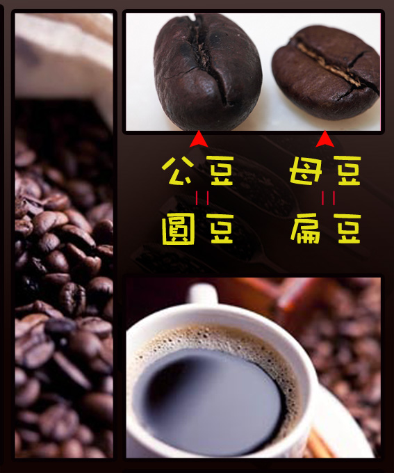 咖啡豆中,所謂公豆,就是沒有分化成兩半,一顆咖啡漿果裡只有圓圓一顆的咖啡豆;