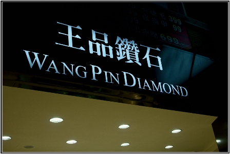 星期天PM19:40,我和我伴侶手拿著婚紗公司搭的鑽戒優待卷,滿心歡喜的到了某處二樓看鑽戒,服務員的態度雖然算不上差,但我的心情卻是很不滿意,當然理由是因為他干涉我的選擇,介紹也是輕描淡寫的帶過,那態度的部分先撇開不談,單講鑽石戒指的部分我也異常的不滿意,於是我們倆走出福華跨上我的座騎,飛快的一個迴轉,說時遲那時快,眼角依稀看到,有個小小的看板上寫著,『王品』兩個字,滿腦子閃過的是那個賣牛排王X這裡也有?趕緊將我的座騎停下,我倆準備一探究竟,仔細一看是王品鑽石不是牛排耶?!