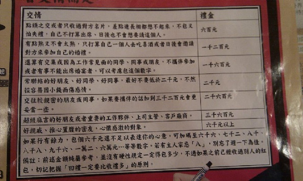 從朋友的fb轉載過來低!!~可以看看包紅包的金額以及交情喔 出處是台中婚紗夏菲亞~~~