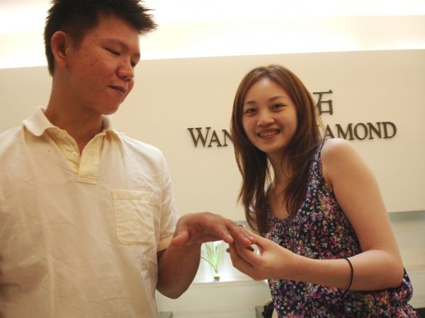 我也豪不客氣的把帥帥的戒子套到帥帥的手指上